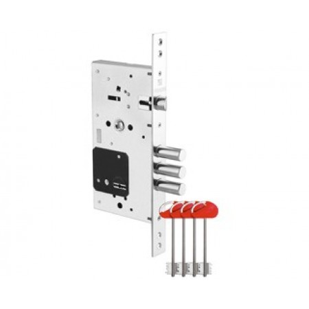 Замок врезной сувальдный Fuaro V25/S-60.85.3R16 с тремя ригелями и защелкой предназначен для установки во входные металлические двери. Стальной оцинкованный корпус. Закаленная пластина от высверливания. Универсальная реверсивная защелка, подходит для левых и правых дверей. Отверстия под стяжные винты. Бэксет- 60мм. Выход ригелей- 36 мм. Межосевое расстояние -85 мм. Открывание-4 полуоборота. Диаметр ригелей -16мм. В комплект входят: 4 ключа с эргономичной пластиковой головкой для дверей толщиной 40-120 мм, крепежная фурнитура. Распространённый тип-размер, не требуется переналадка оборудования для перехода на замки серии V25.